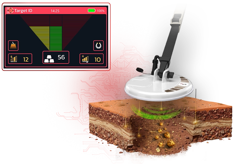 Questa tecnologia fornisce al rilevatore un'alta sensibilità per gli obiettivi piccoli e un'eccellente stabilità nei terreni mineralizzati, garantendo il miglior equilibrio tra profondità, discriminazione e accuratezza sul campo.