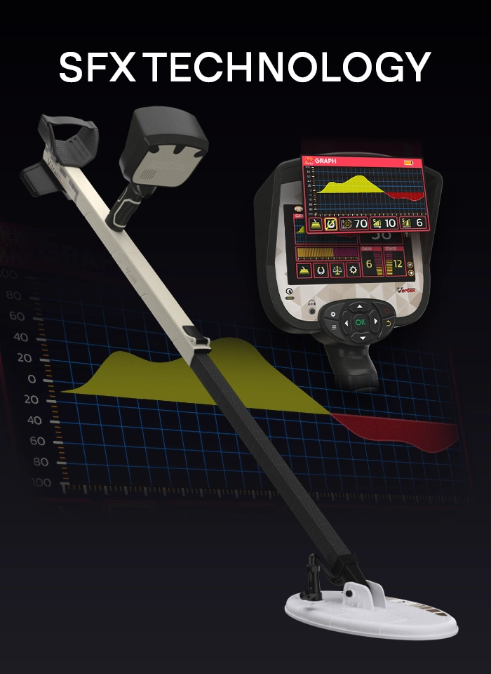 La tecnologia SFX costituisce il nucleo responsabile della prospezione, discriminazione, profondità e stabilità nel rilevatore Vitran VX10. Le bobine di ricerca V10 e V25 sono state sviluppate appositamente per operare in piena integrazione con essa, rendendole una parte essenziale delle sue prestazioni sul campo.