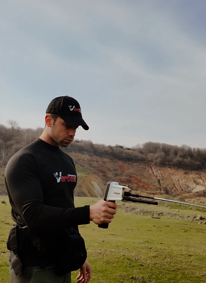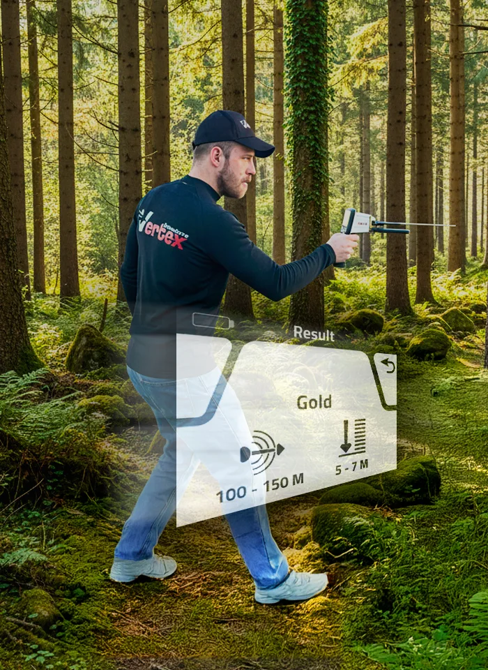 - Анализирует естественные частотные сигнатуры, связанные с золотом, металлами, полостями и грунтовыми водами