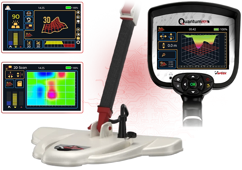 Quantum Lite был специально разработан для пользователей, которым необходима высокая эффективность зондирования и точный анализ грунта в упрощенной и доступной системе без необходимости в полноценном профессиональном мультисистемном детекторе.
